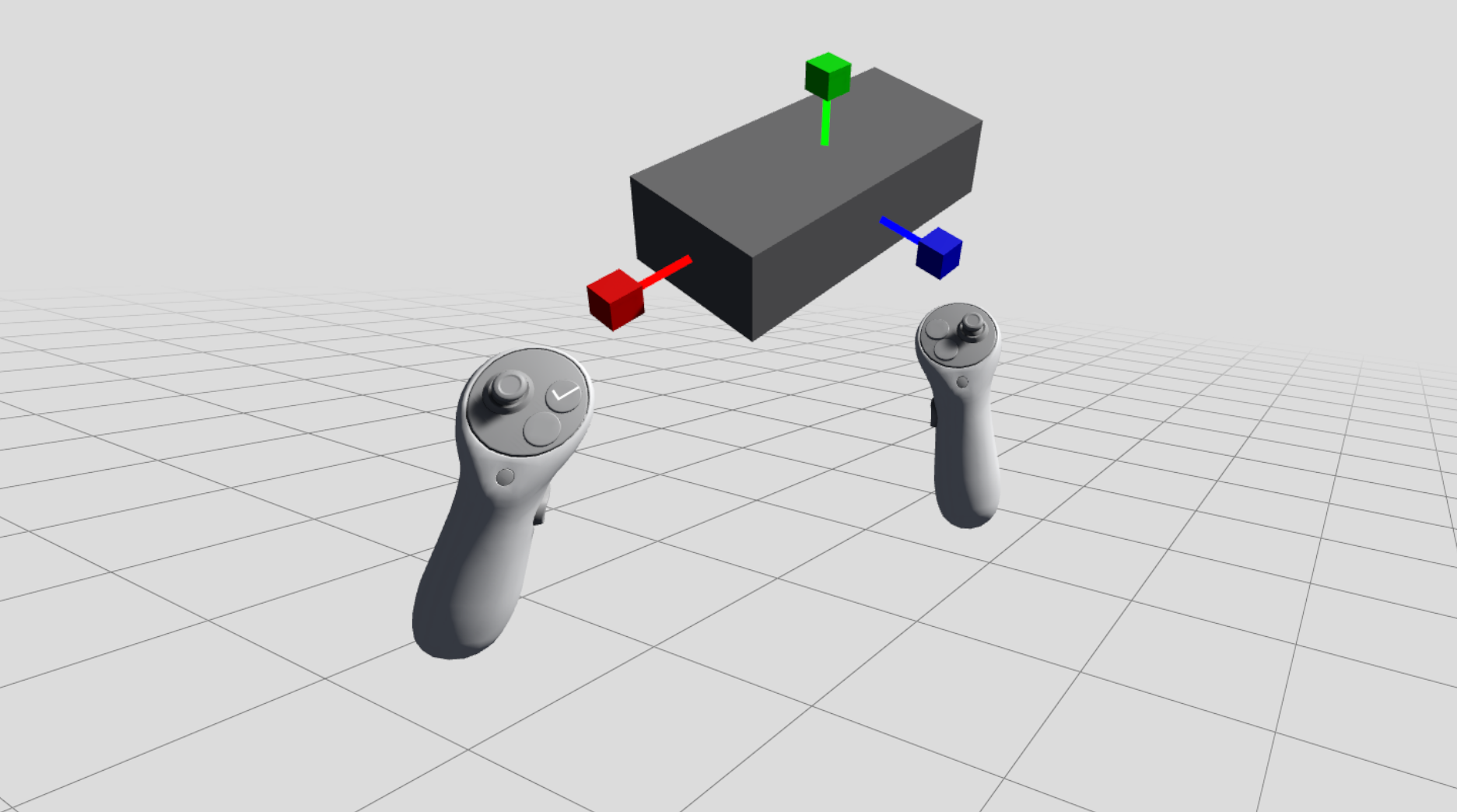 Per-axis object scaling for XR environments with color-coded grabbable handles and visual feedback stems. Enables independent scaling along X, Y, and Z axes through direct manipulation.